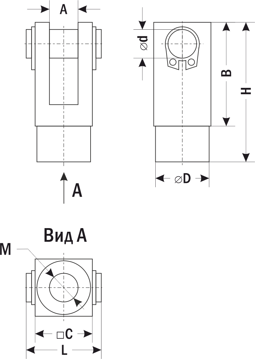 Для пневмоцилиндров с диаметром поршня 16...200 мм и резьбой М6...М36 (размер М, см. чертеж)