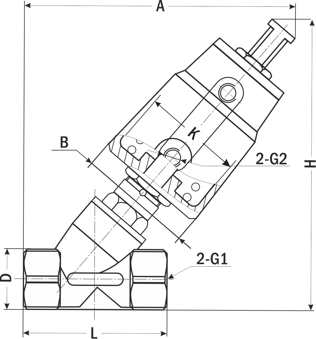 Пневматический клапан нормально открытый одностороннего действия с угловым поршнем УПК12-1-N2 для управления потоком рабочей среды в трубопроводе. Закрывается при подаче управляющего давления на клапан и автоматически открывается под действием пружины при снятии управляющего давления.